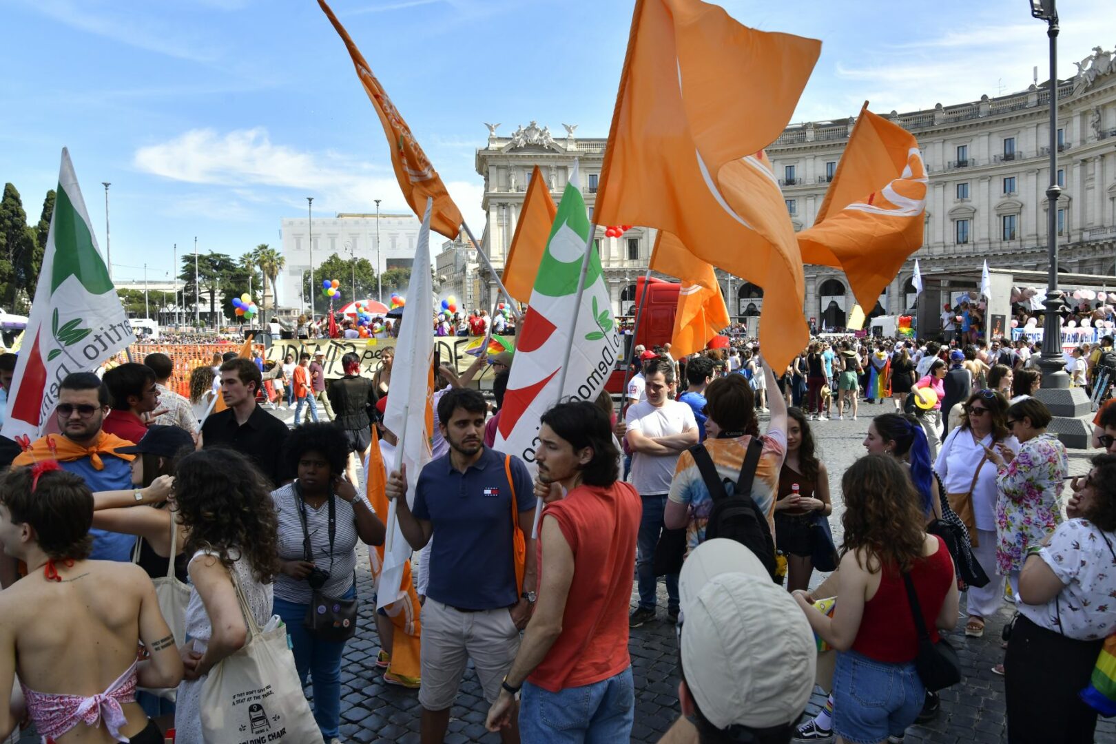 Madrina della manifestazione è Annalisa, con il brano “Sinceramente”, scelto come inno. Tra i presenti, il M5s con le bandiere, la leader del Pd Elly Schlein, +Europa con un suo carro, esponenti dell’Alleanza Verdi Sinistra.