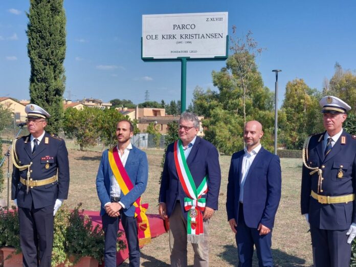 ROMA (ITALPRESS) – Un parco di Roma è stato oggi ufficialmente intitolato a Ole Kirk Kristiansen, fondatore del Gruppo Lego, l’azienda danese produttrice di giocattoli fondata nel 1932 e conosciuta in tutto il mondo per i suoi mattoncini. Alla cerimonia di scoprimento della targa toponomastica nell’area di via della Riserva Grande, nel Municipio XIV, hanno partecipato l’assessore alla Cultura di Roma Capitale, Miguel Gotor, il general manager di Lego Italia, Marco Capone, e il presidente del Municipio XIV, Marco Della Porta. Si tratta della prima intitolazione di un’area pubblica al fondatore del Gruppo LEGO al di fuori della Danimarca, un’intitolazione che è stata richiesta da varie associazioni italiane di appassionati (Adults Fan Of Lego) e che è stata approvata all’unanimità dalla Commissione Consultiva di Toponomastica. “Intitolare un’area della nostra città, dove proprio i bambini possono andare a divertirsi e giocare, al fondatore della Lego, i cui mattoncini sono passati nelle mani di tutti, grandi e piccoli, vuole essere un modo per celebrare la fantasia e la creatività che ne hanno contraddistinto l’attività e per rendere omaggio alla sua filosofia, che è all’origine dello stesso nome ‘Legò, parola composta unendo due parole danesi ‘leg’ (gioca) e ‘godt’ (bene); un modo per esprimere lo scopo cui mirava – ha dichiarato l’assessore Gotor – E quello di giocare bene, sviluppando manualità, stimolando ingegno e fantasia e affinando la capacità di concentrazione, è un obiettivo da perseguire ora più che mai, in un’epoca in cui i nostri figli sono portati, fin dalla più tenera età, a essere spettatori passivi di immagini e contenuti. E chissà che quest’area non possa diventare luogo di incontro e di amichevole confronto tra i tanti appassionati dei mattoncini Lego della città di Roma”, ha concluso. “Sono molto orgoglioso di essere qui per inaugurare il parco dedicato al fondatore del Gruppo Lego, Ole Kirk Kristiansen. Da sempre, la nostra azienda, mette al centro del proprio impegno i bambini e le bambine di tutto il mondo, affinchè crescano all’insegna della creatività. Il nostro obiettivo è quello di continuare a portare gioia e divertimento attraverso un’esperienza di gioco inclusiva, senza etichette, discriminazioni o confini. Ed è proprio quello che ci auguriamo di vedere in questo parco: famiglie, amici, bambini, giovani, anziani, che insieme vivano momenti di condivisione sentendosi parte di una comunità. Roma è sempre stata votata alla socialità e siamo onorati che, da oggi, in questa realtà, ci sia anche il nostro amato mattoncino” ha commentato Marco Capone, general manager Lego Italia. “Ci fa piacere pensare che questo spazio dia un riconoscimento agli aspetti che il gioco dei Lego porta con sè: la possibilità di costruire qualcosa insieme, la capacità di elaborare progetti, l’idea che niente è inaccessibile, neanche un’opera d’arte. Abbiamo accolto con piacere l’intitolazione a Ole Kirk Kristiansen di un giardino nel nostro Municipio, auspicando che il gioco riporti i nostri bambini all’aperto all’insegna di una socialità sana e formativa”, così il presidente del Municipio XIV, Marco Della Porta.(ITALPRESS).