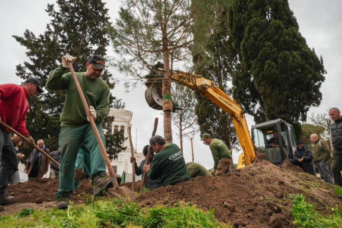 Roma, tornano i pini in Piazza Venezia