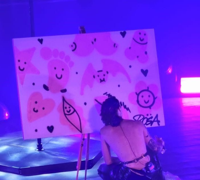 MILANO (ITALPRESS) – Ieri sera, nel corso della prima serata del suo tour di cinque date “Rosa Chemical Live”, il cantautore italiano Rosa Chemical, all’anagrafe Manuel Franco Rocati, noto anche per essere stato uno dei protagonisti del Festival di Sanremo 2023 con il brano “Made in Italy”, ha realizzato, a sorpresa, la prima delle tre opere di street art che saranno messe all’asta sul portale online dedicato alle iniziative benefiche, Charity Star.