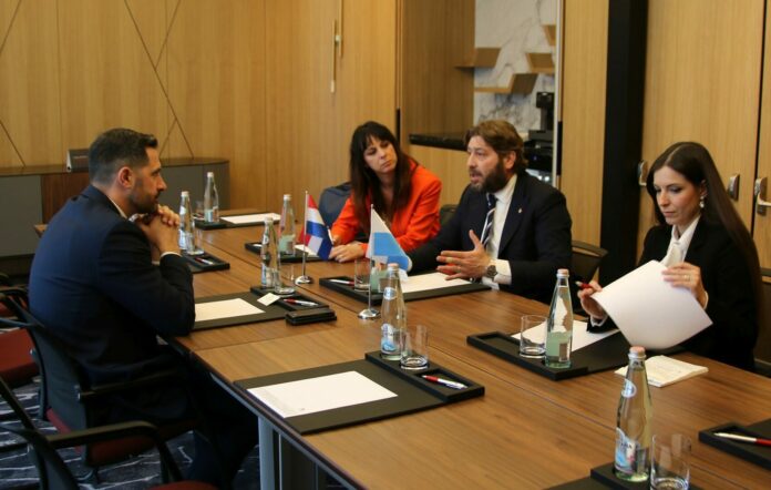 SAN MARINO (ITALPRESS) – In occasione della partecipazione a F.E.S.T.A. (Future of Environmental Sustainable Tourism Albania) organizzato dal Ministero del Turismo dell’Albania insieme all’Organizzazione Mondiale delle Nazioni Unite UNWTO, il Segretario di Stato per il Turismo di San Marino Federico Pedini Amati, accompagnato dalla Focal Point di San Marino presso l’Organizzazione Mondiale delle Nazioni United Bojana Gruska, ha partecipato a due importantissimi incontri bilaterali, il primo con il vice ministro dell’economia e dell’innovazione della Lituania Ieva Valeskaite e il secondo con il Ministro del turismo croato Tonci Glavina.