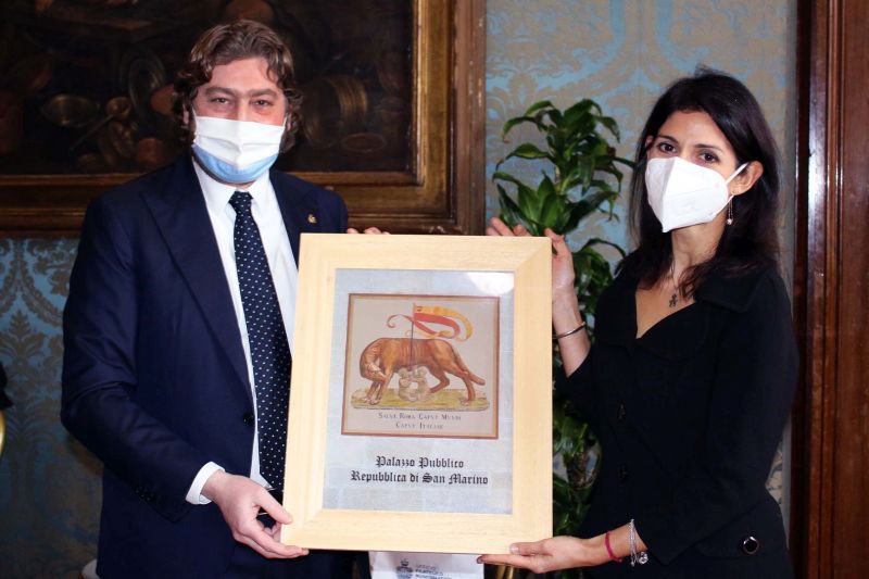 L’incontro, cordiale e propositivo, si è concluso con il tradizionale scambio di doni. Il Segretario di Stato ha omaggiato la Sindaca con una riproduzione dell’affresco che San Marino ha dedicato nel 1985 all’amicizia con Roma Capitale d’Italia posizionato nell’atrio di Palazzo Pubblico.