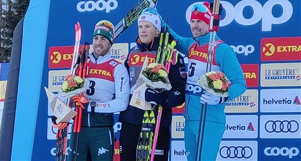 E’ ancora Johannes Klaebo ad impedire a  Federico Pellegrino di vincere la sprint in tecnica libera di Val Mustair, in Svizzera, nella terza tappa (sulle sette in programnma) del Tour de Ski. Il norvegese, che all’inizio di dicembre si era imposto a Davos e pure nella tappa inaugurale di Dobbiaco aveva messo i suoi sci davanti a tutti, ha approfittato di un contatto sulla salita conclusiva fra il campione valdostano e il russo Sergei Ustiugov (terzo al traguardo), con quest’ultimo che ha danneggiato la papera di Pellegrino, impossibilitato a spingere al massimo delle proprie forze nel momento in cui Klaebo si involava verso il traguardo indisturbato. Federico ha limitato i danni con un importante secondo posto che gli vale il ventitreesimo podio della carriera in Coppa del mondo, mentre Klaebo balza in vetta alla graduatoria del torno conm 12″ di vantaggio su Ustiugov.