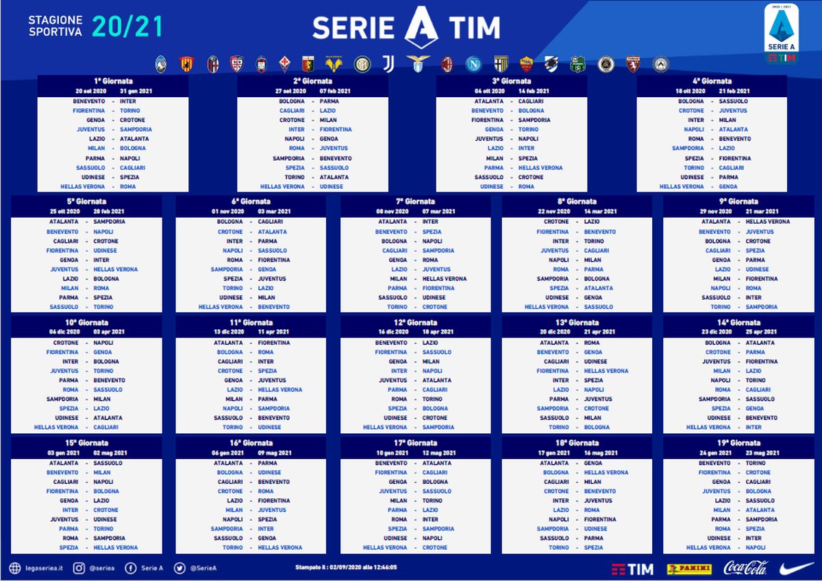 Svelato il calendario 2020-2021, Juve debutto contro Samp
