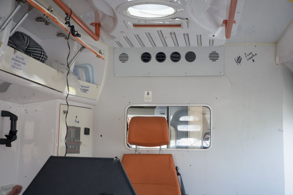 Mandatory Credit: Photo by Marcello Valeri/ZUMA Press Wire/Shutterstock (14687318k) The interior of the ambulance destroyed by Russian artillery in the Kharkiv region exhibited for the campaign 'Ukraine is calling' by the organization LUkraine in collaboration with the Christian Association of Ukrainians in Italy in Rome. Also on display in Rome is an ambulance from the Russian-Ukrainian war zone, which is touring Europe for the campaign 'Ukraine is calling', launched by the Luxembourg-based non-profit organization LUkraine. The goal is to raise funds to buy 112 ambulances and fire trucks for the front lines. According to the organizers, in September 2022, while providing assistance to a civilian wounded in a shelling in the village of Staryi Saltiv, Kharkiv region, the ambulance was hit by Russians with about 300 bullets, the rescue workers did not even have time to load the wounded man into the ambulance, just thirty seconds after their arrival, a bomb severely damaged the vehicle. The Roman stage of the tour was organized in collaboration with the Christian Association of Ukrainians in Italy. Russia-Ukraine War: 'Ukraine is calling' campaign arrives in Rome. Italy. - 02 Sep 2024