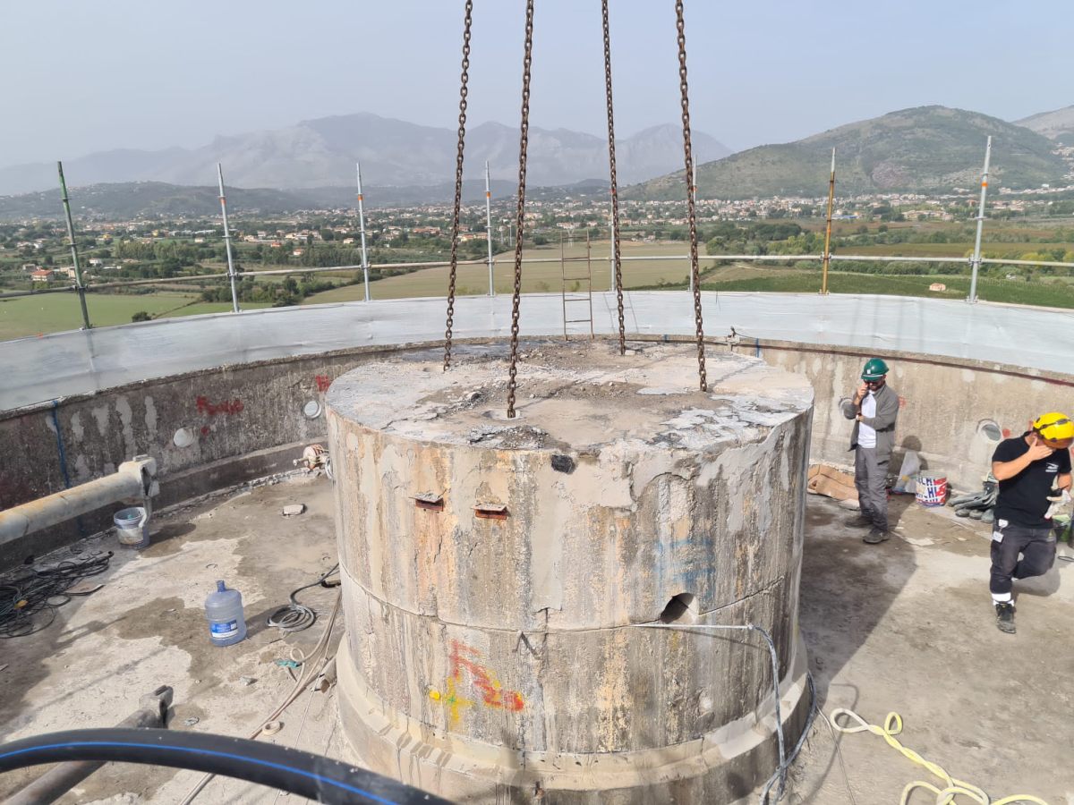 La tecnica impiegata per la demolizione è il taglio a filo diamantato, eseguito con l’ausilio di una gru. Il taglio avviene dall’alto verso il basso e prevede il progressivo sezionamento della struttura in blocchi di cemento armato, ciascuno con peso inferiore a 10 tonnellate.