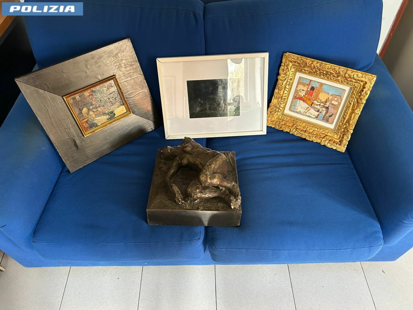 Gli investigatori, nel corso di indagini, hanno rintracciato i due che entravano in un bar, in via Casal de Pazzi, con delle valigie di grosse dimensioni tra le mani e, insospettiti dal loro atteggiamento circospetto, li hanno identificati e controllati, trovando uno dei due uomini in possesso di 650 euro in contanti. All’interno di una delle due valigie hanno rinvenuto tre quadri avvolti in panni e buste di cellophane, nonchè una scultura di metallo munita di targhetta dalla quale si evinceva la sua provenienza spagnola.