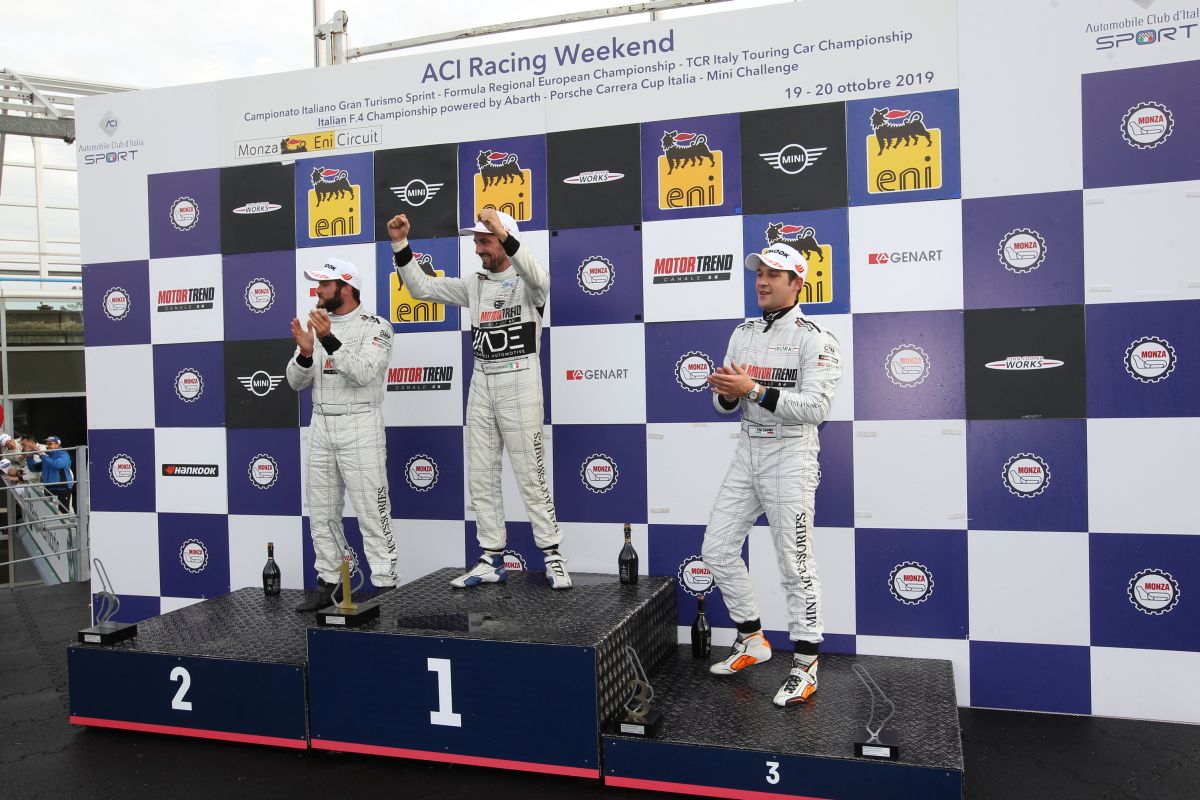 Tra le Mini John Cooper Works Challenge Lite vittorie per Rogari e Tronconi, mentre Di Fabio, grazie al quarto posto in gara 1 e il podio in gara 2, ha conquistato il titolo, approfittando anche dell’assenza di Bencivenni, protagonista assoluto nella prima parte del campionato, ma costretto a dare forfait nelle ultime due gare. Sul podio di gara 1, dietro a Rogari, sono saliti Gonnella e Tronconi, mentre in gara 2, alle spalle dello stesso Tronconi, hanno agguantato il podio Rogari e Di Fabio. Festeggiamenti intensi quindi per Gustavo Sandrucci, che ha compiuto un’impresa sportiva riservata a pochi e si è aggiudicato il campionato 2019, seguito da Paolo Maria Silvestrin (Emmeauto By Melatini Racing) al secondo posto sul podio e Roberto Gentili (M.Car By AC Racing Technology), salito sul podio al terzo posto.
