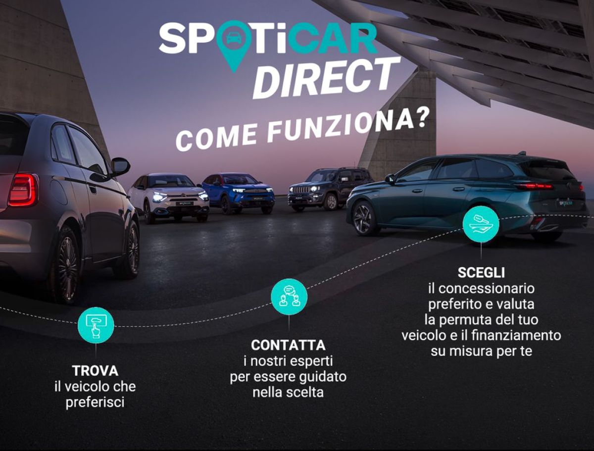 L’esperienza di acquisto phygital, che integra il meglio del mondo fisico e digitale è molto importante per Spoticar. Il cliente “Spoticar Direct”, infatti, potrà usufruire di un Call Center dedicato che lo supporterà nella fase di selezione della vettura. Le fasi finali del processo di acquisto, come il pagamento e la consegna, si svolgeranno nel punto vendita scelto dal Cliente dove i consulenti alla vendita presenteranno le caratteristiche principali della vettura ed effettueranno la consegna al cliente. “Con “Spoticar Direct”, adesso siamo in grado di offrire un percorso phygital che offre una gamma ancora più ampia di veicoli usati, utilizzando la nostra rete Spoticar presente su tutto il territorio italiano. “L’innovazione ci permette anche di continuare a rafforzare la posizione di leadership di Spoticar” ha dichiarato Giuseppe Di Mauro, Direttore Pre Owned Stellantis in Italia.