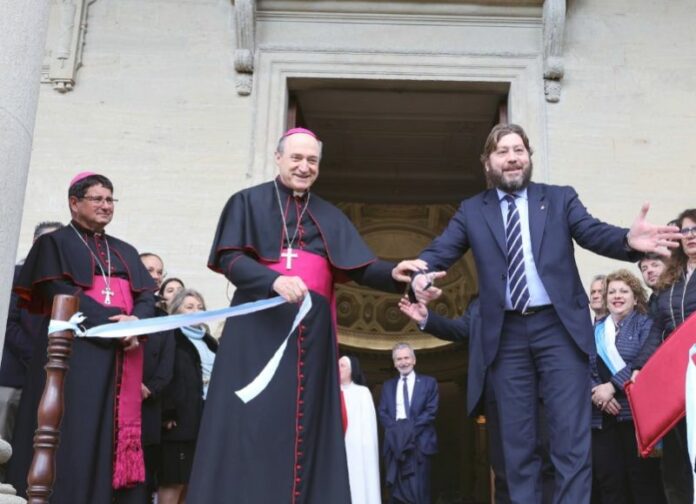 “Questo è un giorno speciale per la nostra comunità” ha esordito nel suo saluto il Vescovo Andrea Turazzi che al termine dell’Udienza, insieme al Segretario di Stato per il Turismo Federico Pedini Amati, ha “tagliato il nastro” al Cammino del Santo Marino sul sagrato della Basilica. La Cerimonia d’inaugurazione è proseguita con la presentazione delle mappe, del materiale informativo e delle iniziative religiose legate al Cammino del Santo Marino.
