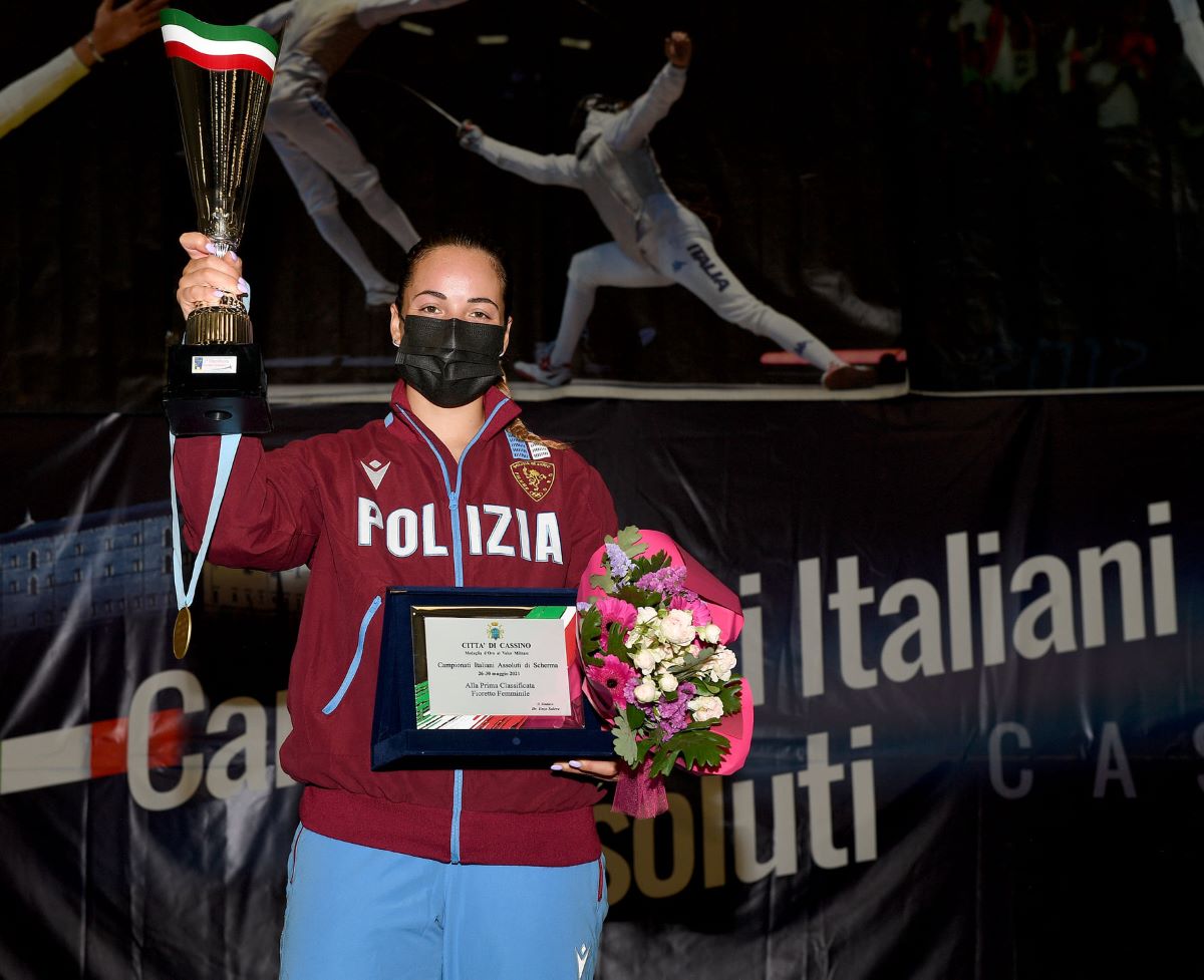 CASSINO (ITALPRESS) – Tris tricolore per Alice Volpi. Dopo Gorizia 2018 e Palermo 2019, a Cassino sul gradino più alto del podio nella gara di fioretto femminile c’è ancora la senese delle Fiamme Oro. Alice Volpi, classe 1992, è diventata la regina della giornata inaugurale dei Campionati Italiani Assoluti 2021 vincendo in finale il derby toscano contro l’amica livornese Beatrice Monaco delle Fiamme Gialle, mentre si dividono il terzo gradino Camilla Mancini delle Fiamme Gialle e Martina Favaretto delle Fiamme Oro. Sulle pedane installate presso il Polo logistico “Cosilam” di Piedimonte San Germano erano 94 le fiorettiste a contendersi il primo dei sei titoli tricolore individuali da assegnare in questi cinque giorni di gare a Cassino. Alice Volpi ha conquistato il pass per la finale dopo aver vinto, nei quarti e in semifinale, due sfide in “casa” Fiamme Oro rispettivamente contro Erica Cipressa (15-12) e Martina Favaretto (15-13). Si è arrivati così alla sfida con Beatrice Monaco, che aveva superato prima Elisa Vardaro dell’Aeronautica Militare e poi Camilla Mancini delle Fiamme Gialle con un doppio 15-12. Un match equilibrato, emozionante, vinto da Alice Volpi con il punteggio di 15-9. Un assalto “speciale” dal punto di vista emotivo, come raccontato dopo l’ultima stoccata proprio dalla campionessa italiana. “Beatrice Monaco per me è una sorella. E’ la persona a cui voglio più bene. Viviamo insieme la scherma da una vita. Avevamo una bottiglia di vino da stappare se ci fossimo ritrovate in finale. E’ andata così”, le parole di Alice Volpi dopo il terzo titolo tricolore consecutivo, anche se di mezzo c’è stato lo stop forzato dell’attività agonistica nel 2020 a causa della pandemia. “Era un bel banco di prova. Una gara a cui tenevo molto – ha detto ancora la vincitrice -. Ci avevo preso gusto per due volte a vincere gli Assoluti e volevo ripetermi. Ho fatto i conti con la fatica. E’ stata una giornata importante, perchè lo stimolo che dà una gara non c’è in allenamento. Ho espresso una bella scherma, fisicamente dovrò lavorare ma sono davvero felice del risultato”. La chiosa di Alice Volpi è sulla semifinale vinta contro la “millennial” Favaretto: “Era l’assalto che temevo di più. Martina è una che non molla mai, esprime una scherma molto aggressiva. E’ stata dura spuntarla”. Proprio Martina Favaretto, classe 2001, grazie al suo terzo posto finale si è aggiudicata il titolo nazionale Under 23. Domani, alle ore 10, in pedana il fioretto maschile.
