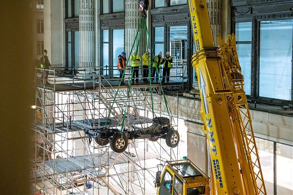 Spettacolare ingresso per un esemplare unico della Land Rover Defender nel famoso centro commerciale Selfridges, a Londra. E’ passato, infatti, attraverso una finestra del primo piano. L’esclusiva Edizione Selfridges del Defender Works V8 sarà l’elemento centrale del rinnovato reparto abbigliamento maschile della sede di Oxford Street, dopo che i tecnici del Team Land Rover Classic ne avranno terminato il riassemblaggio. Per passare attraverso la finestra del primo piano, infatti, il Defender, ordinato su misura è stato smontato, per essere rimontato nei prossimi quattro giorni dagli esperti tecnici del Team. Una volta terminato il lavoro, lo speciale veicolo sarà ricoperto da un telo protettivo, per consentire agli addetti di Selfridges di completare l’allestimento del reparto abbigliamento uomo, che riaprirà il 29 ottobre. L’edizione speciale Selfridges è nata come Defender 110 Pick Up 2016, ma è stata trasformata in 110 Soft Top dal Team Land Rover Classic, completa di cofano brandizzato nel colore giallo caratteristico di Selfridges.