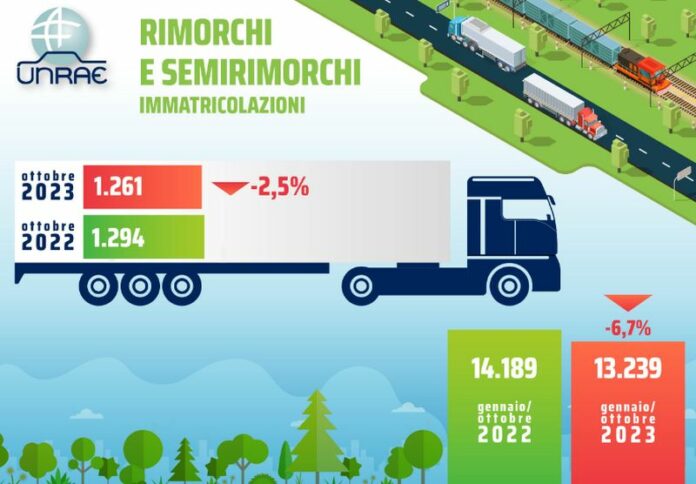 ROMA (ITALPRESS) – Il Centro Studi e Statistiche dell’Unrae – sulla base dei dati di immatricolazione forniti dal Ministero delle Infrastrutture e dei Trasporti (MIT) – ha effettuato una stima del mercato dei veicoli rimorchiati per il mese di ottobre 2023 verso lo stesso mese del 2022. Rimorchi e semirimorchi con massa totale a terra superiore alle 3,5 t: ottobre 2023 vs 2022: -2,5% (1.261 unità immatricolate verso 1.294) Persiste il trend di contrazione del mercato dei mezzi trainati, con il settimo risultato negativo consecutivo a ottobre 2023 (-2,5%). Nei primi dieci mesi dell’anno, si registra un calo aggregato del 6,7%, con 13.239 rimorchi e semirimorchi immatricolati rispetto ai 14.189 dello stesso periodo 2022. “Come prevedibile, si conferma una tendenza al ribasso delle immatricolazioni mensili rispetto all’anno precedente, delineando una prospettiva negativa per il settore alla chiusura dell’anno”, commenta Michele Mastagni, Coordinatore del Gruppo Rimorchi, Semirimorchi e Allestimenti di UNRAE.