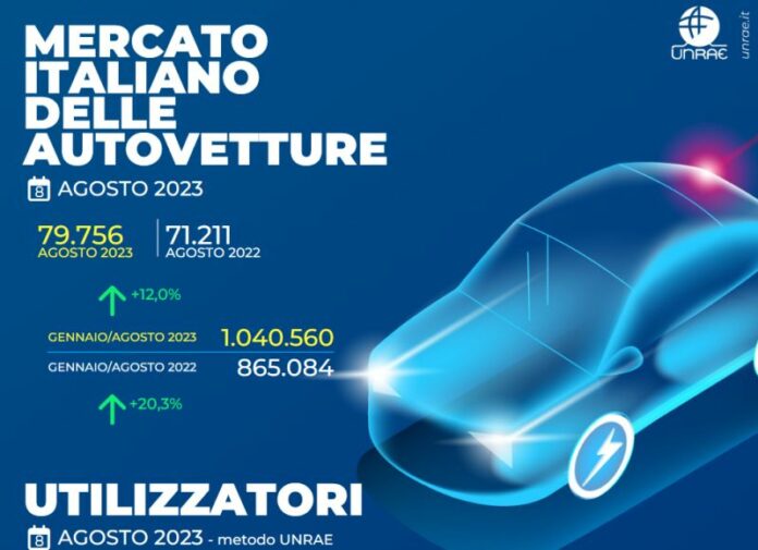 ROMA (ITALPRESS) – Anche per il mercato dell’auto in Italia, agosto è un mese caldo, registrando 79.756 nuove immatricolazioni con un incremento a doppia cifra (+12%) rispetto ad agosto 2022, quando il mercato mostrò il primo segnale di ripresa con una crescita del 9,9% dopo una lunga serie di mesi in negativo. Il risultato attuale è comunque ancora sotto del 10,6% rispetto al dato di agosto 2019. Divario evidente anche nel consuntivo dei primi otto mesi, giunto ora a 1.040.560 immatricolazioni pari a +20,3% rispetto alle 865.084 di gennaio-agosto 2022, ma con 285.000 auto in meno (-21,5%) rispetto al 2019. Leggero segnale positivo ad agosto dall’elettrico: la quota di auto BEV è salita nel mese al 5,0% superando le ibride plug-in (PHEV) che stazionano al 4,1%, e la quota complessiva di ECV sale al 9,1%.