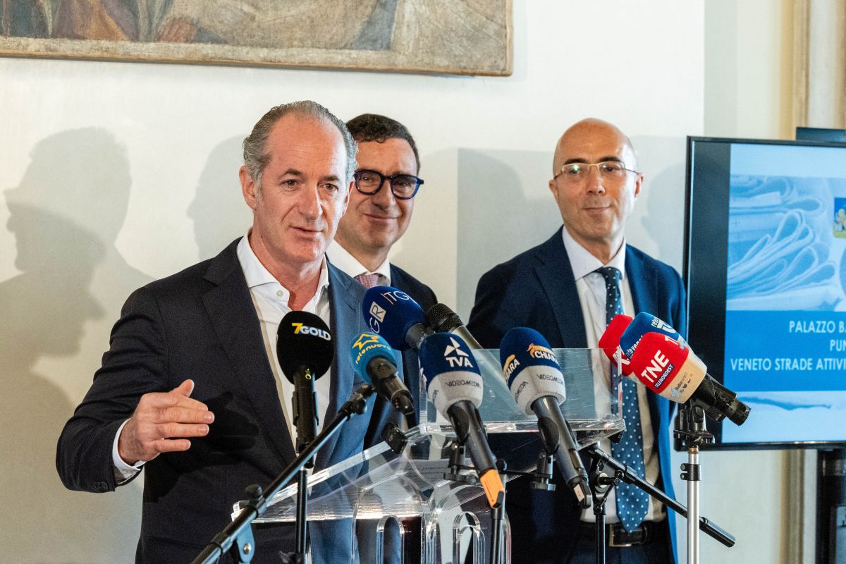 VENEZIA (ITALPRESS) – “Per Veneto Strade il 2023 è stato un anno di impegno, fuori dal comune. E anche quest’anno la mole di progetti e cantieri porterà al Veneto un importante contributo in termini di sicurezza stradale, tempo di percorrenza, impatto positivo sull’ambiente. Fin dalla sua fondazione a cui ha contribuito il compianto dottor Silvano Vernizzi, Veneto Strade porta avanti una mole di attività che presenta degli indicatori assolutamente positivi; non si tratta solo di manutenzione ma dietro ci sono grandi progetti di viabilità. Oggi sono 98 i cantieri aperti per un controvalore di quasi mezzo miliardo di euro”. Lo ha detto il Presidente della Regione del Veneto, Luca Zaia, in occasione della presentazione delle attività realizzate nel 2023 e del piano cantieri 2024 da Veneto Strade, società concessionaria della Regione. Erano presenti la Vicepresidente e Assessore alle Infrastrutture e trasporti, Elisa De Berti; il Direttore Generale di Veneto Strade, Giuseppe Franco; il Presidente del Consiglio di Amministrazione di Veneto Strade, Marco Taccini, insieme con Claudia Bettiol, componente del CdA.