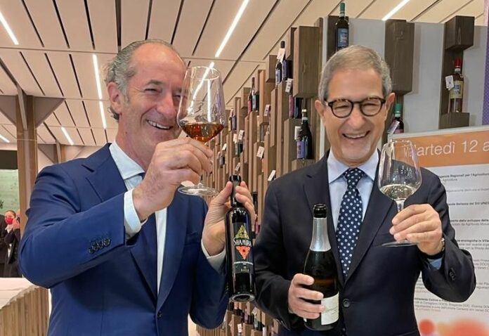 VERONA (ITALPRESS) – Il Patto delle due P: passito e prosecco. Lo hanno annunciato il presidente della Regione Siciliana, Nello Musumeci, e il presidente della Regione Veneto, Luca Zaia, stamane al Vinitaly di Verona. «Due terre italiane diverse, ma capaci di scambiare buone pratiche», hanno detto i governatori davanti ai giornalisti.