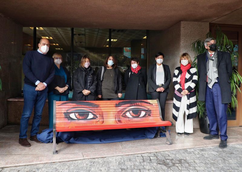 Inoltre, viene inaugurata anche una panchina rossa con su scritto “a Donatella Colasanti e Rosaria Lopez e a tutte le donne vittime di violenza maschile”, installata di fronte all’ingresso principale della Regione Lazio in Via Cristoforo Colombo, alla presenza di Alice Pasquini, artista di fama internazionale che ha realizzato il lavoro grafico sulla panchina e l’attrice Eleonora Fanelli che ha letto un testo tratto dal libro “Ferite a morte” di Serena Dandini.