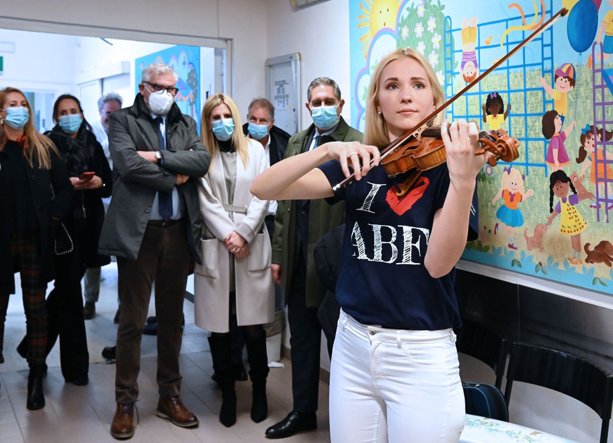 GENOVA (ITALPRESS) – Oggi si è tenuta la tradizionale visita di fine anno all’ospedale pediatrico Giannina Gaslini di Genova del presidente della Regione Liguria Giovanni Toti e dell’assessore alla Sanità Angelo Gratarola. Accolti dal direttore generale Renato Botti e il direttore scientifico dell’istituto Angelo Ravelli, hanno portano un saluto e un augurio di fine anno ai piccoli pazienti, alle famiglie e al personale sanitario dell’ospedale; spazio anche all’esibizione di Anastasiya Petryshak, violinista di origini ucraine da anni impegnata nel sociale, che nell’ Unità Operativa Complessa di Neurochirurgia e Nefrologia cha suonato alcuni brani. La musicista ha un legame speciale con la città: nella sua carriera di livello internazionale ha anche suonato il mitico “Cannone”, il violino di Paganini conservato a Genova.
